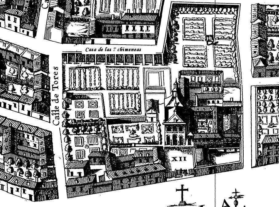 La Casa de las Siete Chimeneas fue una de las primeras casas construidas en la zona y hogar de algunos ilustres personajes de la Historia de España, como el conde duque de Olivares, Manuel Godoy o el marqués de Esquilache.